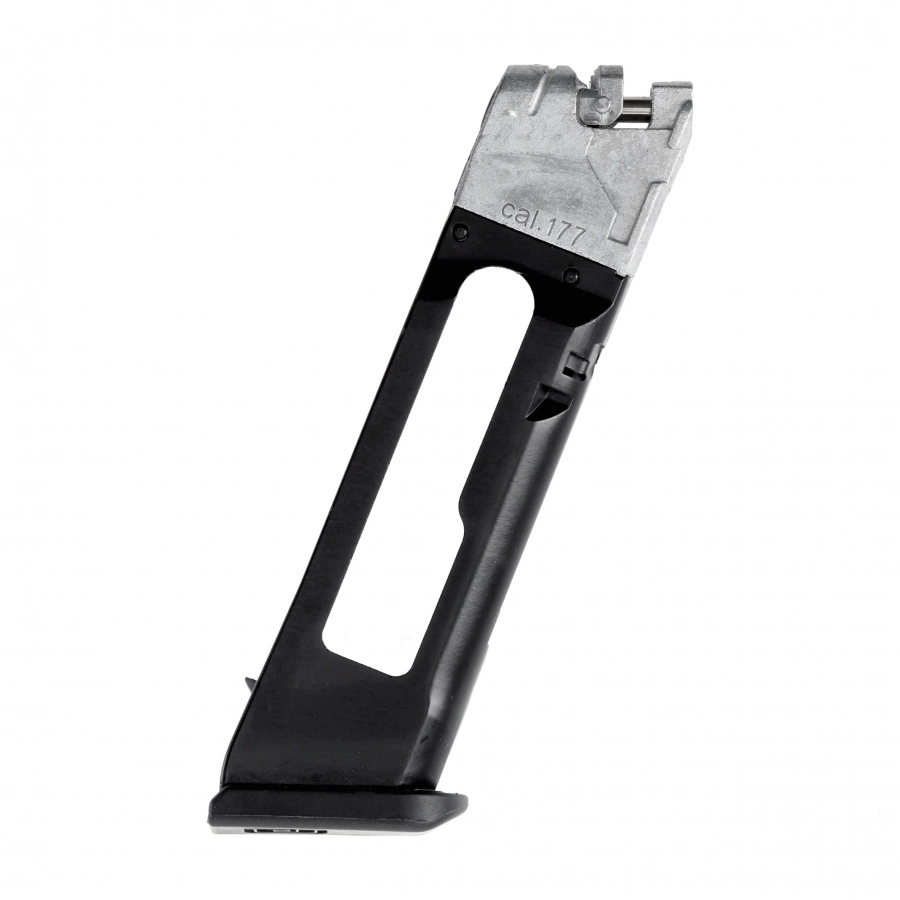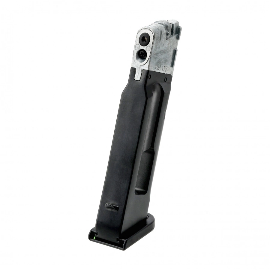 Spare magazine designed for a wind gun Glock G17 Gen5 BB 4.5mm. Robust construction connects metal body from foot and feeder made of durable polymer, which bears the distinctive Glock logo.
