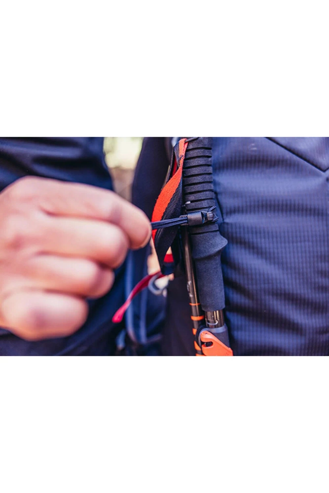 - Trekking pole attachment system with adjustable bungee loops and loops at the bottom