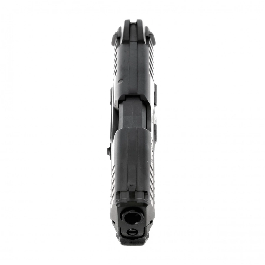 The gun is equipped with mechanical sighting instruments with contrasting white dots, which make it easier to quickly align the bow tie with the scimitar and speed up target acquisition.