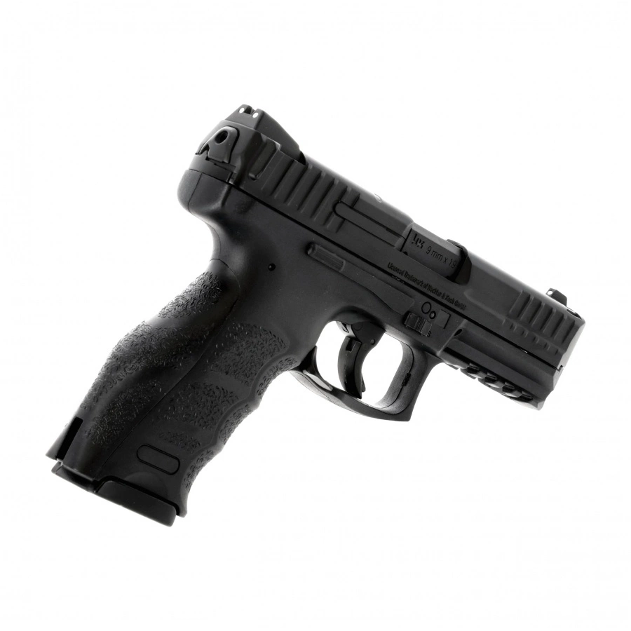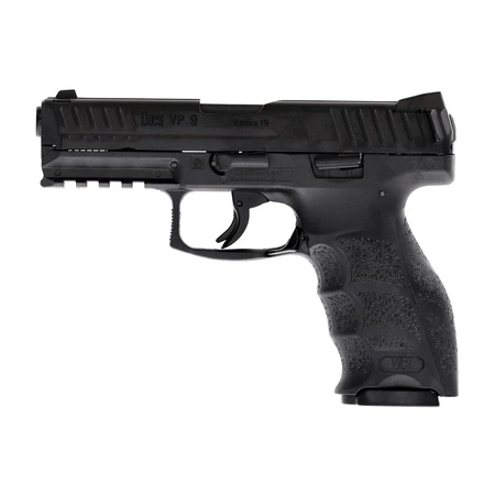 H&K VP9 Blowback 4.5 mm BB CO₂ is a modern air rifle with a dynamic system blow-back, offering a highly realistic shooting experience. The model is equipped with metal, movable lock, polymer backbone, magazine latch on both sides, and 22 mm Picatinny rail, that allows mounting of tactical accessories.