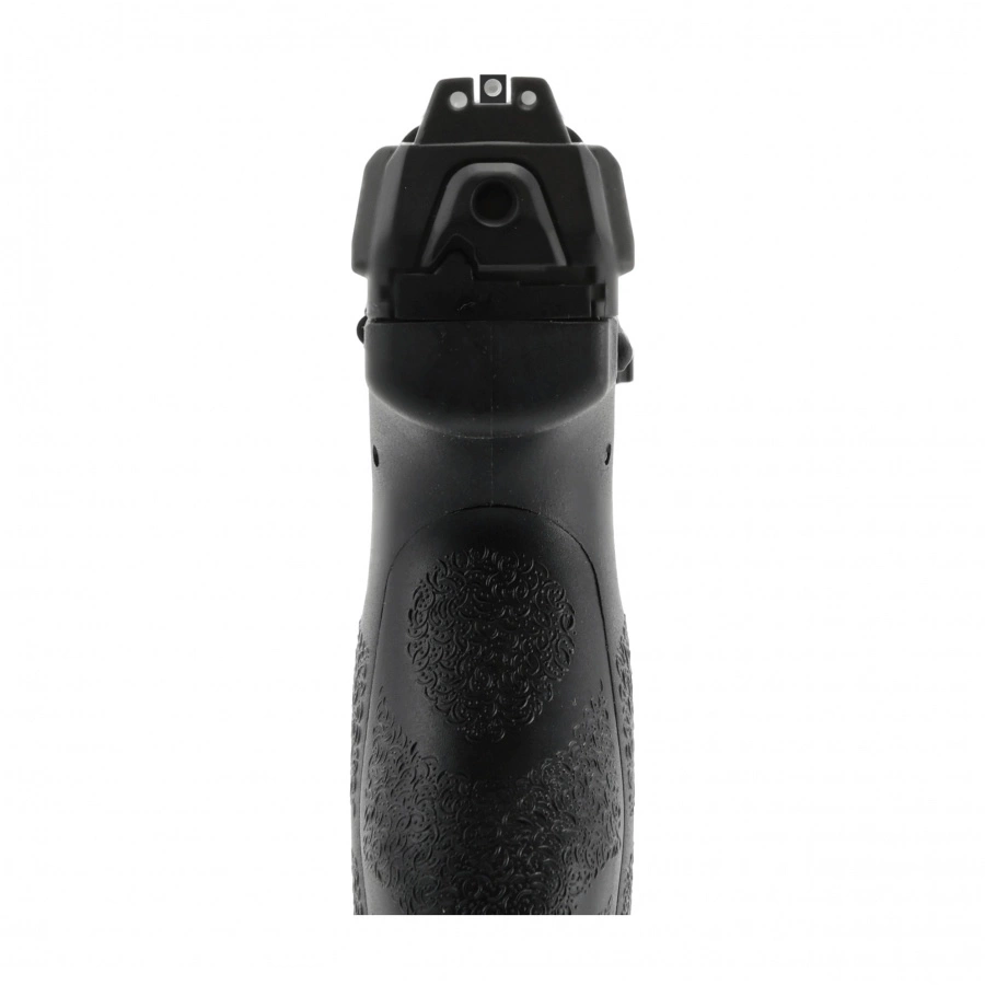 Profiled handle with aggressive texturing guarantees firm grip and high control over the replica even in dynamic shooting.