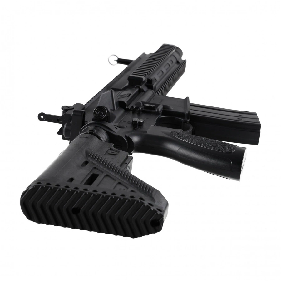 Adjustable AR-15 type flask blocked in 5 items, with rubber foot and attachment to the carrying belt, allows you to adjust the length of the carbine to the height and build of the shooter. The barrel ends in a2 standard flame suppressor (bird cage), which further emphasizes the realistic appearance of the replica.