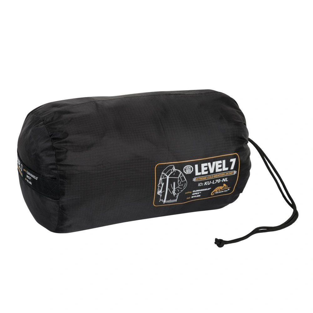 Helikon Level 7 is a lightweight yet very warm winter jacket designed as a outer insulation layer for use in low temperatures. It was created with the following in mind outdoor, survival, bushcraft and tactical applications, where reliable protection from cold, wind and light precipitation while maintaining mobility is important.