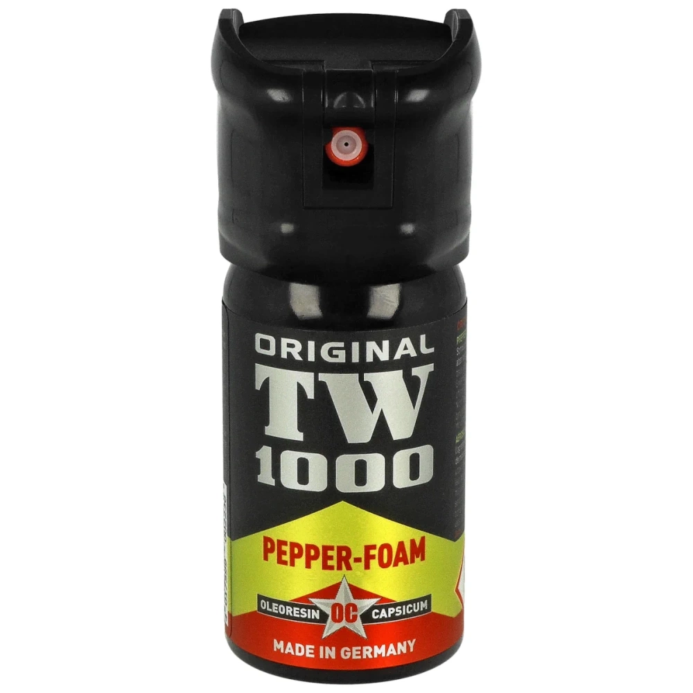- TW 1000 Pepper-Foam 40 ml - effective defense in any situation! Foam jet with a range of 4 m, resistant to wind gusts and immediate action. Safe use indoors. Purchase without permits!