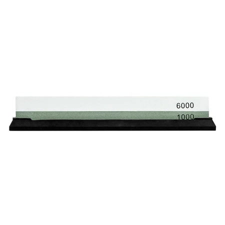 THE EDGE stone SHARP 1000/6000 is a double-sided alumina water stone that, with the right skill, allows you to give your knife perfect sharpness. The stone has two gradations, i.e. fine 1000 (dark gray) for quick sharpening and smoothing, and ultra fine 6000 (white) for proper sharpening and quick sharpening of slightly dulled tools. The 1000 and 6000 gradations are great for for polishing kitchen knives, razors and tools, to which we want to give perfect sharpness.vThe large surface area (180×60 mm) means that we can also comfortably sharpen large tools on the stone, such as axes, machetes.