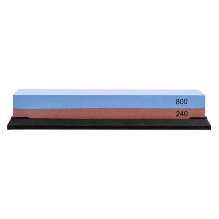 THE EDGE stone SHARP 240/800 is a double-sided alumina water stone for pre-sharpening and polishing. The stone has two gradations, i.e. fine 240 (orange) for repair and initial grinding, and fine 800 (blue for proper sharpening and quick sharpening of slightly dulled tools. Gradations 240 and 800 are great for for sharpening knives and outdoor tools. The large surface area (180×60 mm) means that on the stone we can also comfortably sharpen large tools such as axes, machetes.
