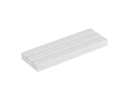 The sharpener is made of arkansas stone of medium gradation. Additional grooves made in the sharpener are used for sharpening small parts, such as fishing hooks.