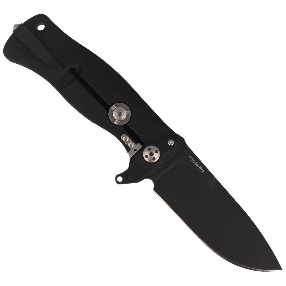 - SR11A Black Aluminum, Black Blade folder from Italian manufactory LionSteel with exclusive Solid technology. Blade made of Sleipner Swedish high-alloy tool steel with high wear and chipping resistance. Frame-Lock, RotoLock head locks