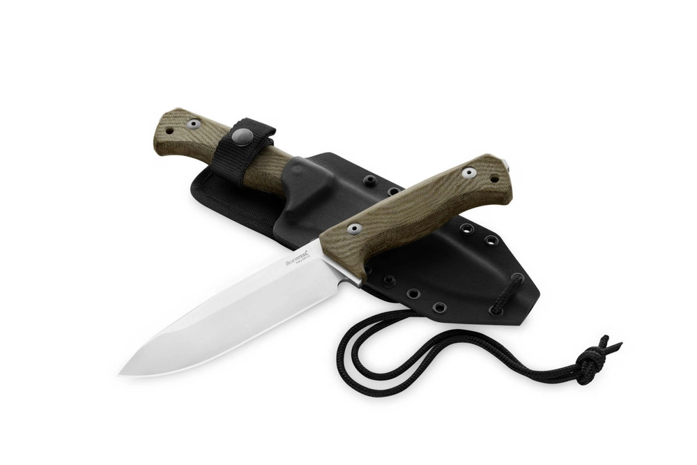 - T6 Green Canvas Micarta, Satin fixed blade knife from LionSteel with Solid® Technology. Large blade for heavy work. Outdoor knife of full tang construction with a blade of excellent CPM 3V steel, for enthusiasts of bushcraft, survival, etc.