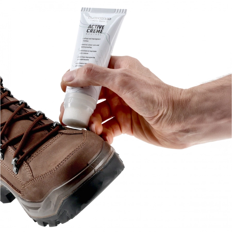 Every trip is a story: a path through the forest, a wet rock, a mountain drizzle or a sunburned trail. Your shoes deserve more than simple care - they deserve to be nourished, protected and regenerated with Lowa Active Creme Neutral.