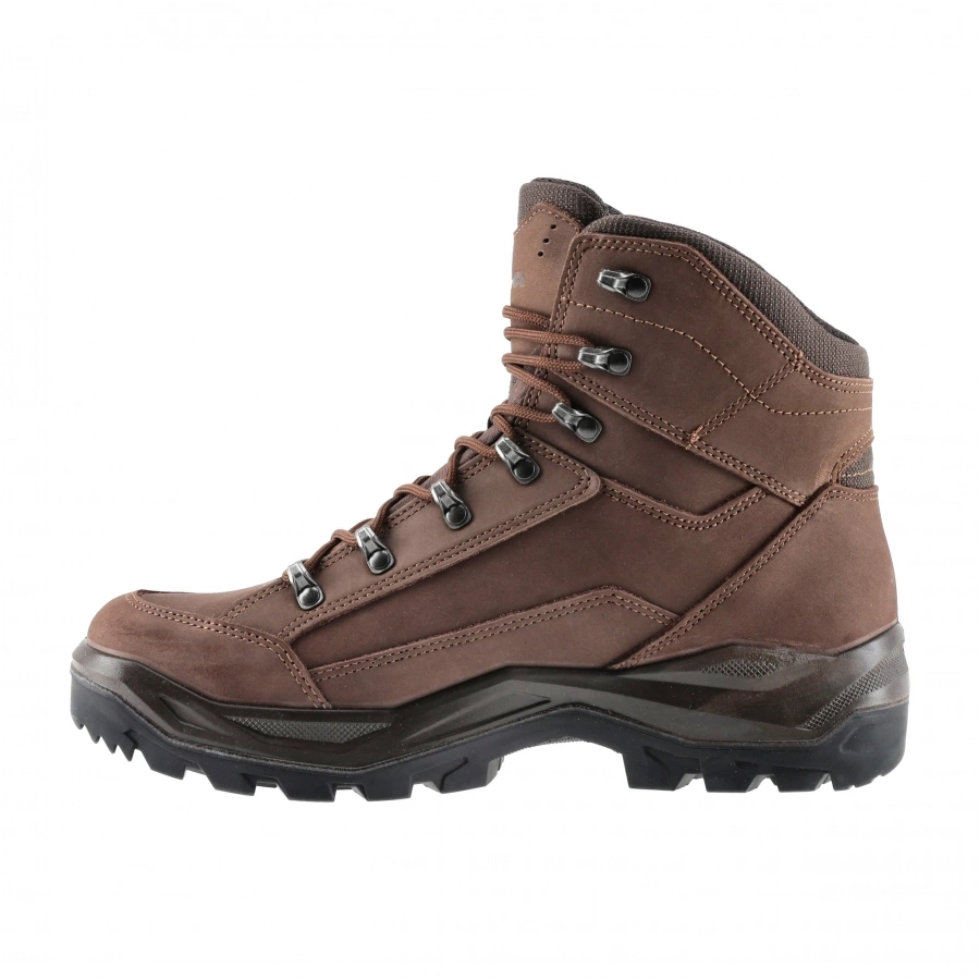 Men's LOWA Renegade II GTX Mid Wide boots in dark brown are reliable and comfortable trekking shoes that combine durability, lightweight and advanced weather protection. Thanks to their sturdy construction and modern technologies, they will prove themselves during long hikes in the mountains, hunting and everyday use on demanding terrain.