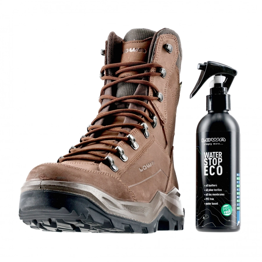 Lowa Water Stop ECO is the choice of conscious users who care about their footwear and the planet. It's a daily reassurance that no matter the conditions - downpour, mud or rough terrain - your shoes will stay dry and comfortable.
