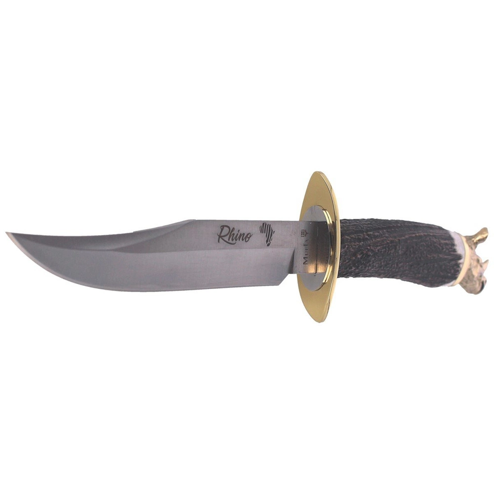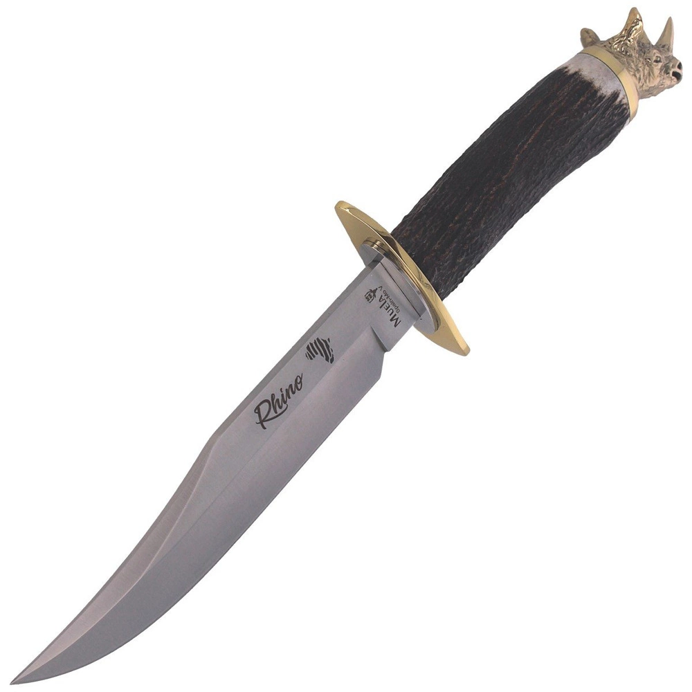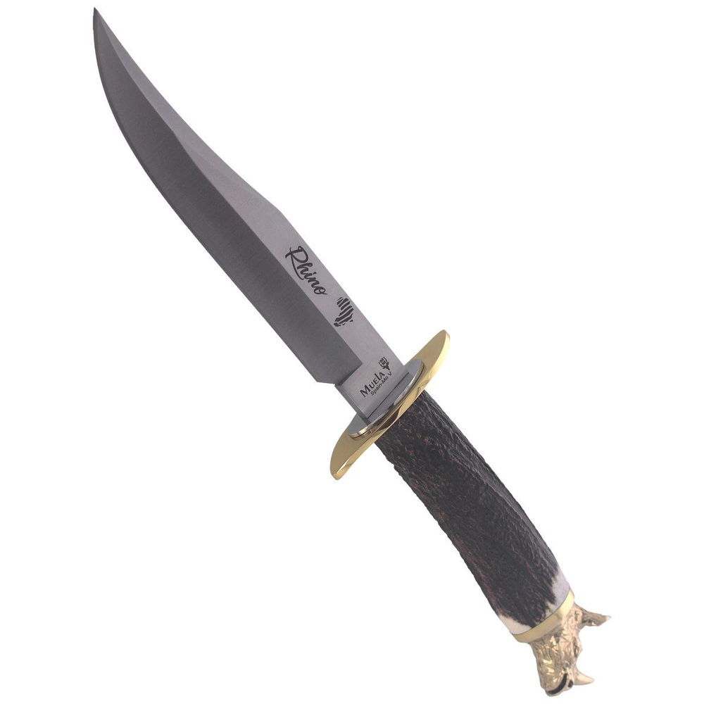 - RHINO-16BF unique knife from Muela's Big Five series. High quality materials careful detailing. Knife for collectors, hunting enthusiasts. Handle deer antler finished with medallion with hunting motif of rhino head. Gift box