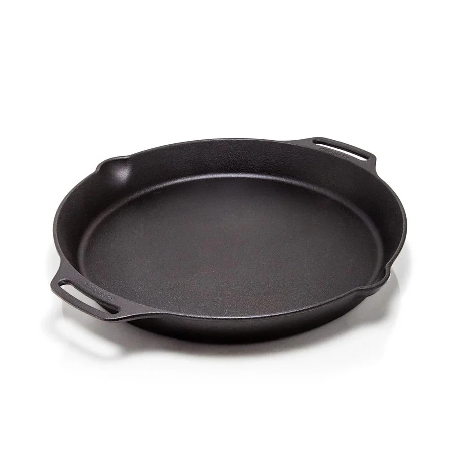 High-quality cast iron with excellent heat distribution is immediately ready for use and easy to clean thanks to its pre-treated surface (seasoned finish). Durable and robust, the pan has a natural non-stick effect that improves with each frying process, as a protective layer is formed. Cast iron also retains heat well, so you can serve your food directly in the pan.
