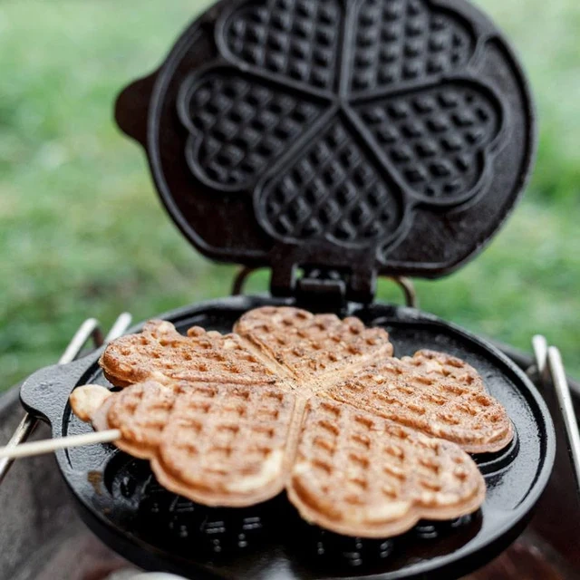 Whether at a barbecue or a bonfire, every waffle is a hit. The waffle maker adds another great dessert to your outdoor kitchen: pour the batter into the waffles, turn once if necessary, and the delicious batter is ready.