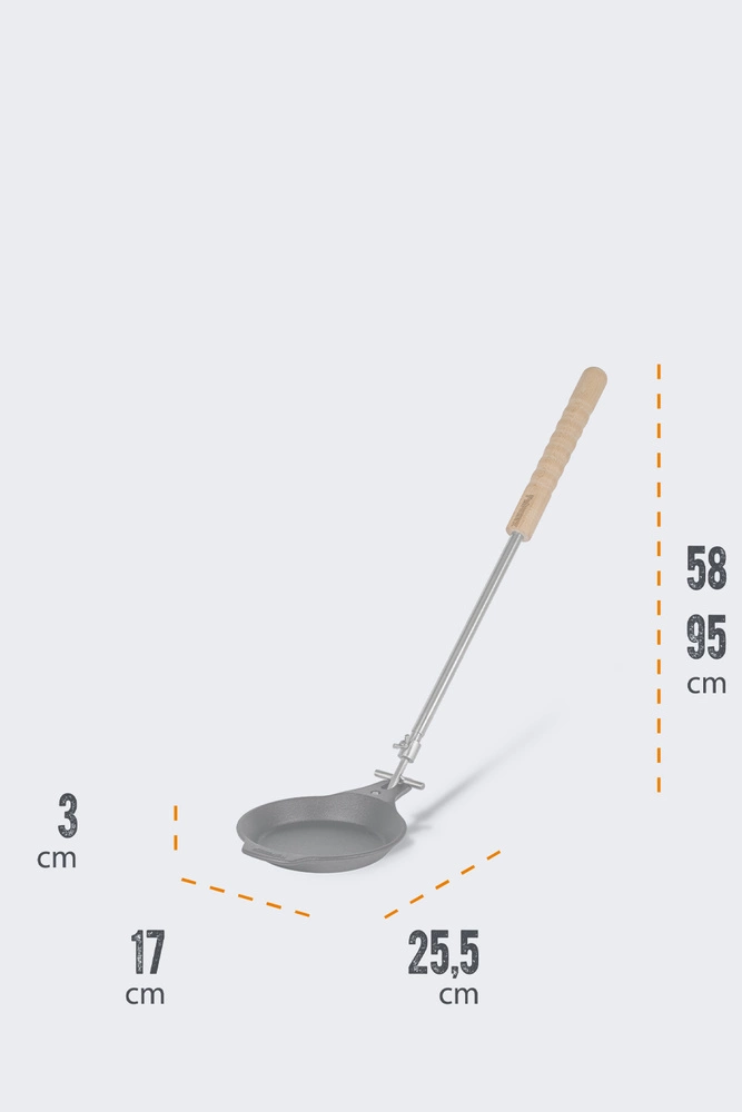 Petromax focal pan is designed for convenient and safe frying directly over the fire. Equipped with removable, telescopic handle, allows you to keep a safe distance from flames and embers. By adjusting the length with the butterfly screw, you can easily adjust the handle to your needs, and the wooden handle provides a comfortable grip and stable guidance of the vessel.