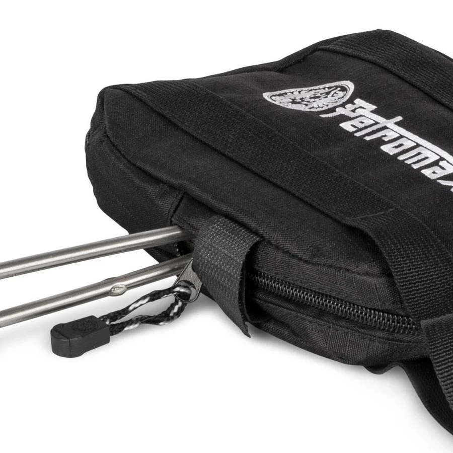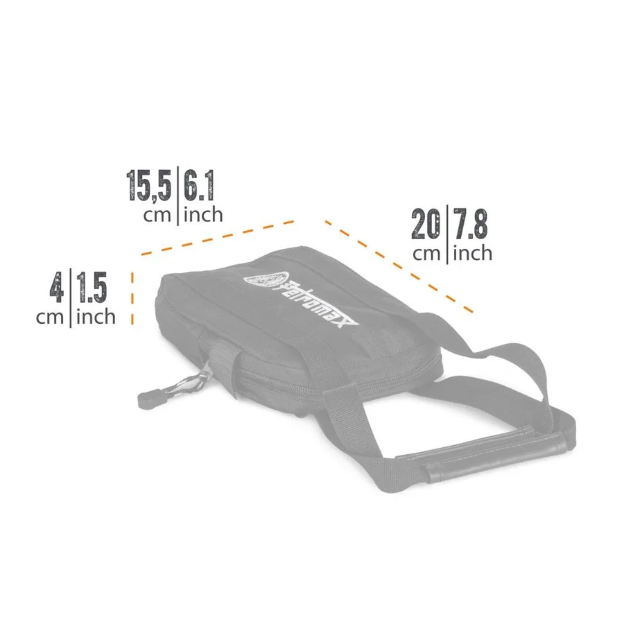 You'll pack this: extra small items for your adventure that you simply stash in a zippered pocket, as well as two mesh pockets, such as a fire piston or ring cleaner. The traditional Petromax logo is embroidered on the top, signifying continuous and excellent quality and making the Petromax Waffle Iron Bag a reliable and sturdy companion when cooking outdoors.