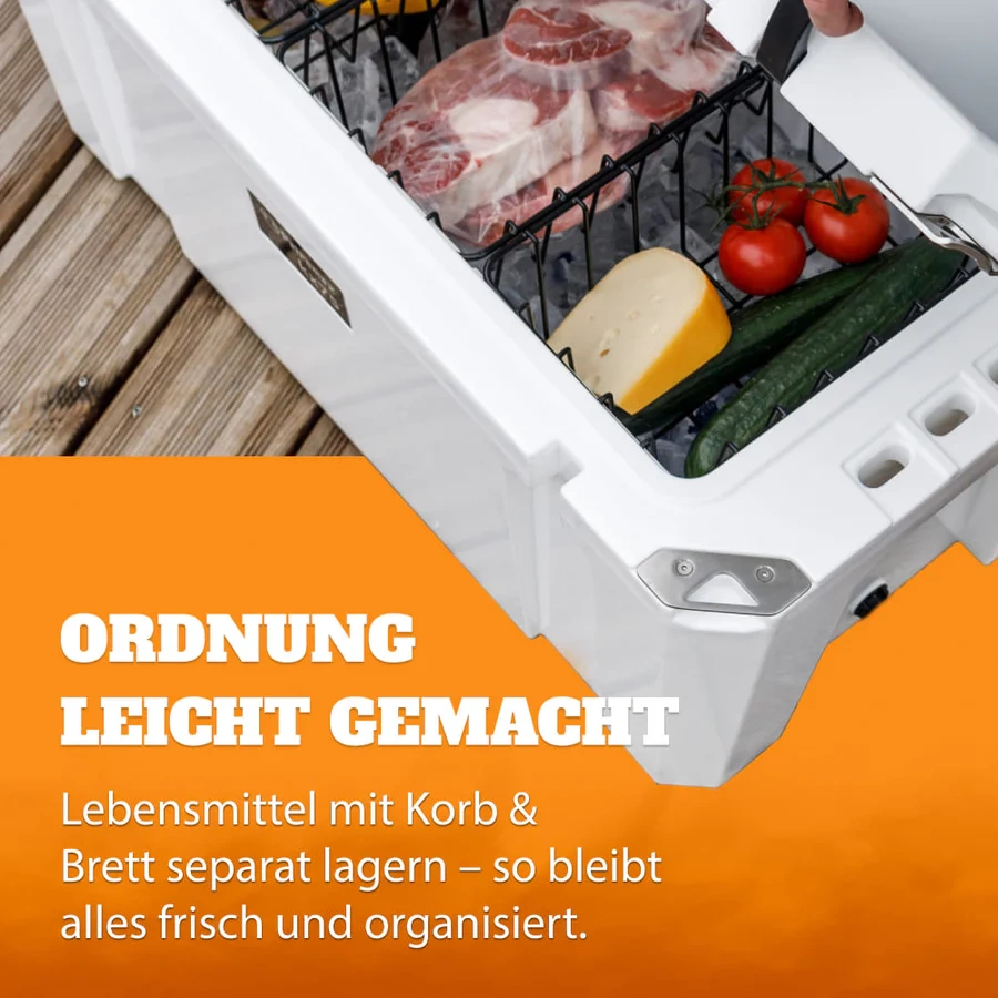 Spacious interior with a capacity of 25 or 50 liters offers enough room for everything you need - from whole cases of drinks to fresh vegetables and meat. Whether you're going on a shopping trip or an extended excursion, the Petromax travel refrigerator will make sure you always have enough cool supplies on hand.
