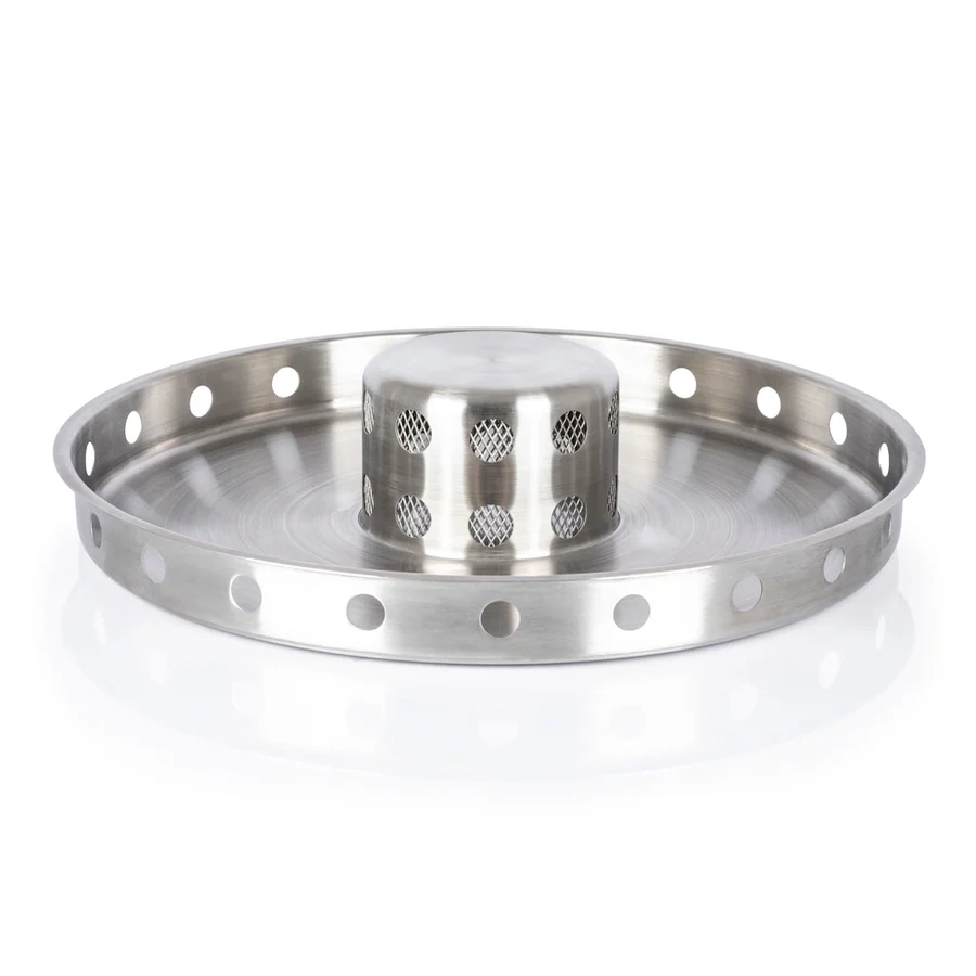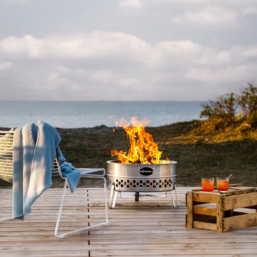 Experience the magic of a real campfire in your garden with the Tyropit fire bowl. The authentic flame pattern creates a wilderness atmosphere that makes every evening special. Thanks to the well-thought-out design and efficient secondary combustion, you can enjoy even combustion and a small amount of ash.Integrated heat shield dissipates heat downward, protecting the floor from damage. High-quality stainless steel in a minimalist design combines naturalness with a stylish look. The hearth bowl is sturdy and durable, with a unique patina over time, and with three sturdy legs it securely holds onto any surface.The Tyropit fire bowl is versatile - it is ideal as a base for cooking and grilling, can be upgraded with a grill plate and is compatible with many other Petromax products (e.g., cast iron cookware, percolators, campfire skewers, waffle irons and more). Enjoy social evenings over dinner, melancholy or romantic moments by the fire - alone or in a group.Gather your loved ones and spend unforgettable evenings around the campfire with the Tyropit stainless steel fire bowl, or enjoy the casual atmosphere by yourself. Feel the warmth and variety of fire and create unforgettable memories.