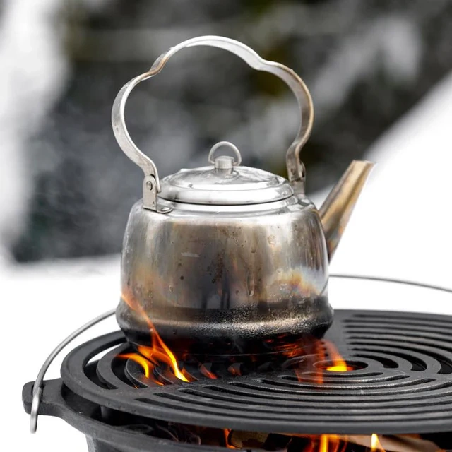 Petromax Tea Kettle is a durable outdoor cooking kettle. Brewing tea is now possible with a heat-resistant stainless steel kettle directly in the embers or suspended over an open fire. Thanks to a balanced handle with a triple curve, the kettle is handy even when filled, and setting it over an open flame works almost by itself. The multi-layer base optimally supports heat distribution, and water is brought to a boil in a flash. The long spout ensures that no drop will pass through the cup while pouring.