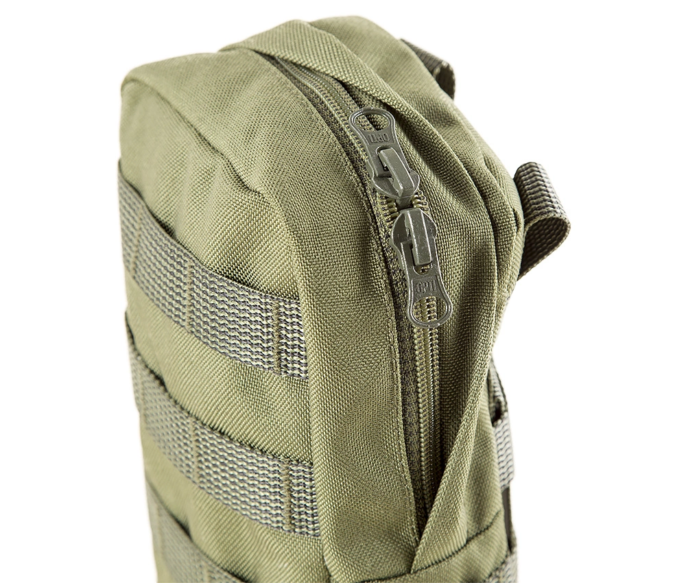 The inner smaller compartment is suitable for a variety of small items, while the main pocket itself is large enough to hold a 1-liter canteen if needed.