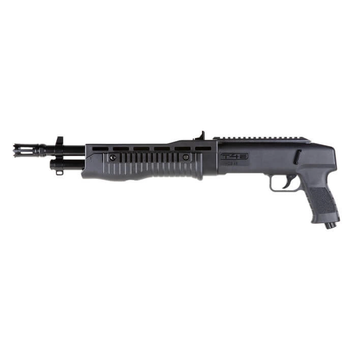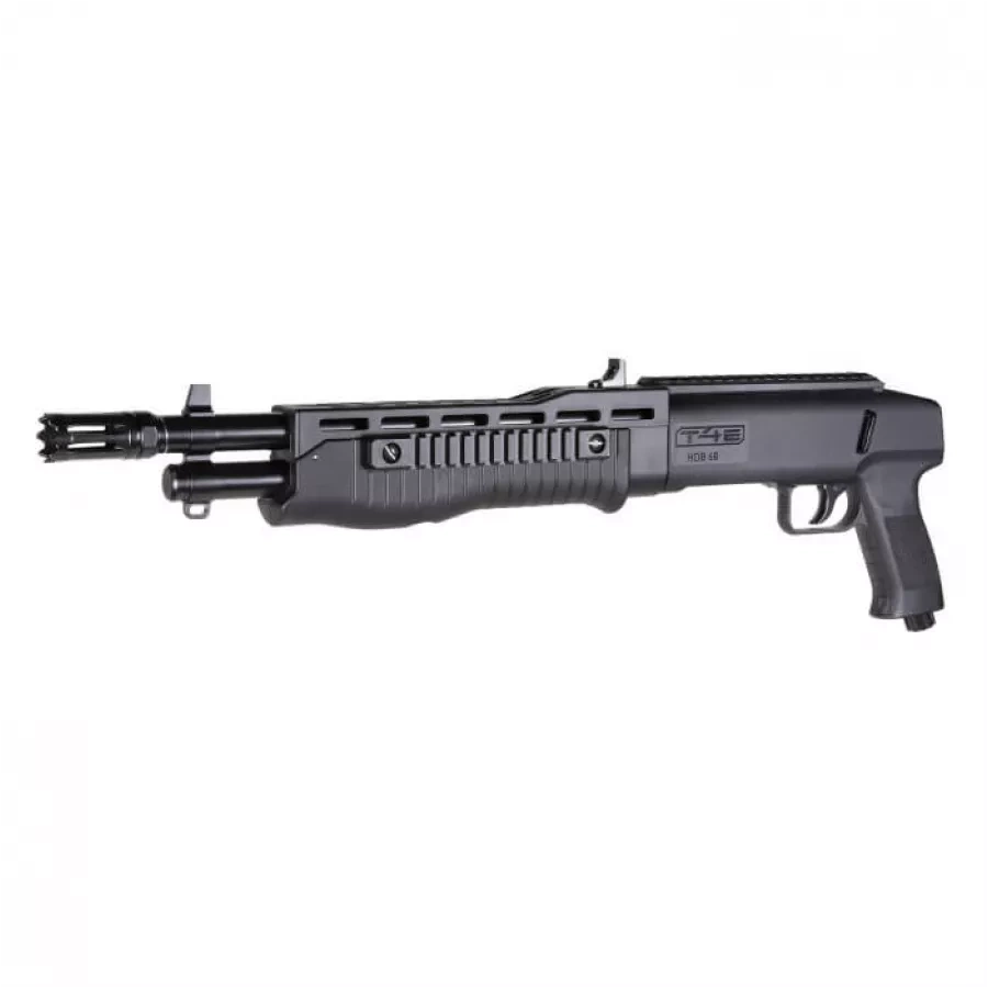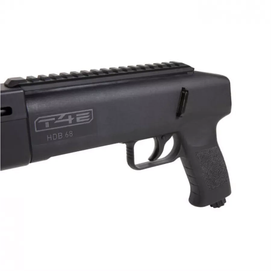 Umarex T4E HDB 68 is a shortened version of the tactical RAM rifle, which combines high effectiveness, large magazine capacity and mobility in all conditions. Equipped with a CO₂ rapid capsule breakthrough system, ergonomic bed type pump-action and three Picatinny rails, offers the user full control of the situation in self-defense and training.