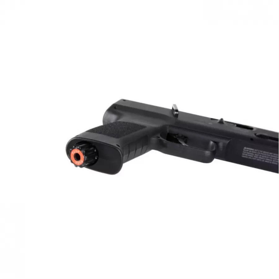 The model is powered by a 12 g CO₂ capsule located in the pistol grip. Thanks to a special mechanism, the capsule remains unpierced during storage and is activated in a fraction of a second after hitting the pin. This guarantees full power and readiness to fire in emergency situations.