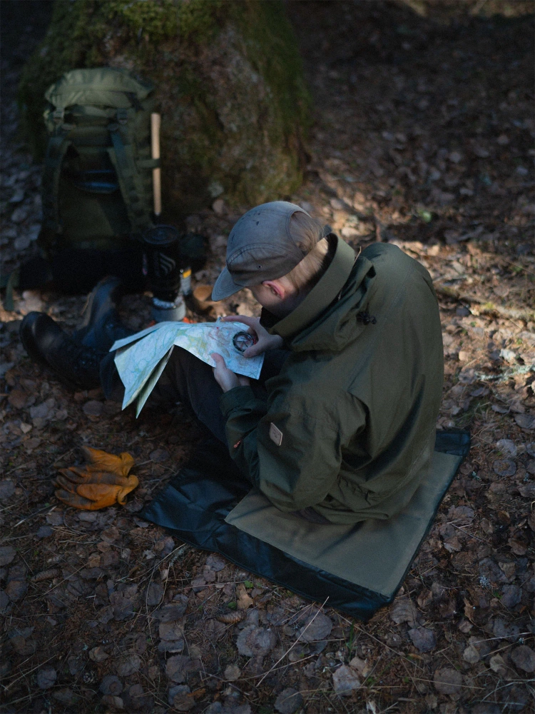 Foldable seating mat with non-slip coating and extendable footrests, similar to our carimata. Folds and fits into the compartments of most of our backpacks. Absolutely sensational when you need to sit, kneel or work in wet, cold or dirty terrain.