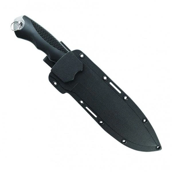 Comes with a functional thermoformed composite sheath with belt mounting with a maximum width of 4.8 cm. The scabbard protects the knife very well and holds the blade securely.