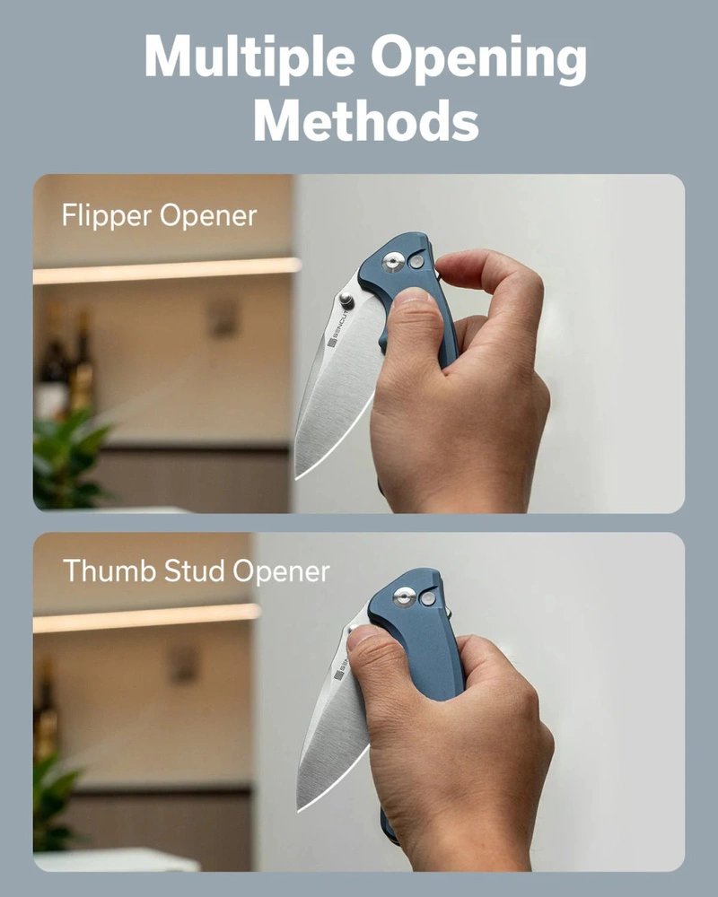 Cybrix Blue Aluminum, Satin compact folding knife with a sturdy design for every enthusiast EDC. Head Drop Point stainless steel 9Cr18MoV, ohandle pads made of aluminum. Thumb Stud on both sides Thumb Stud, fast flipper Flipper (index-finger flipper) and locking button lock allow the blade to be opened in three ways. The perfect companion for your daily wanderings! Bestseller!