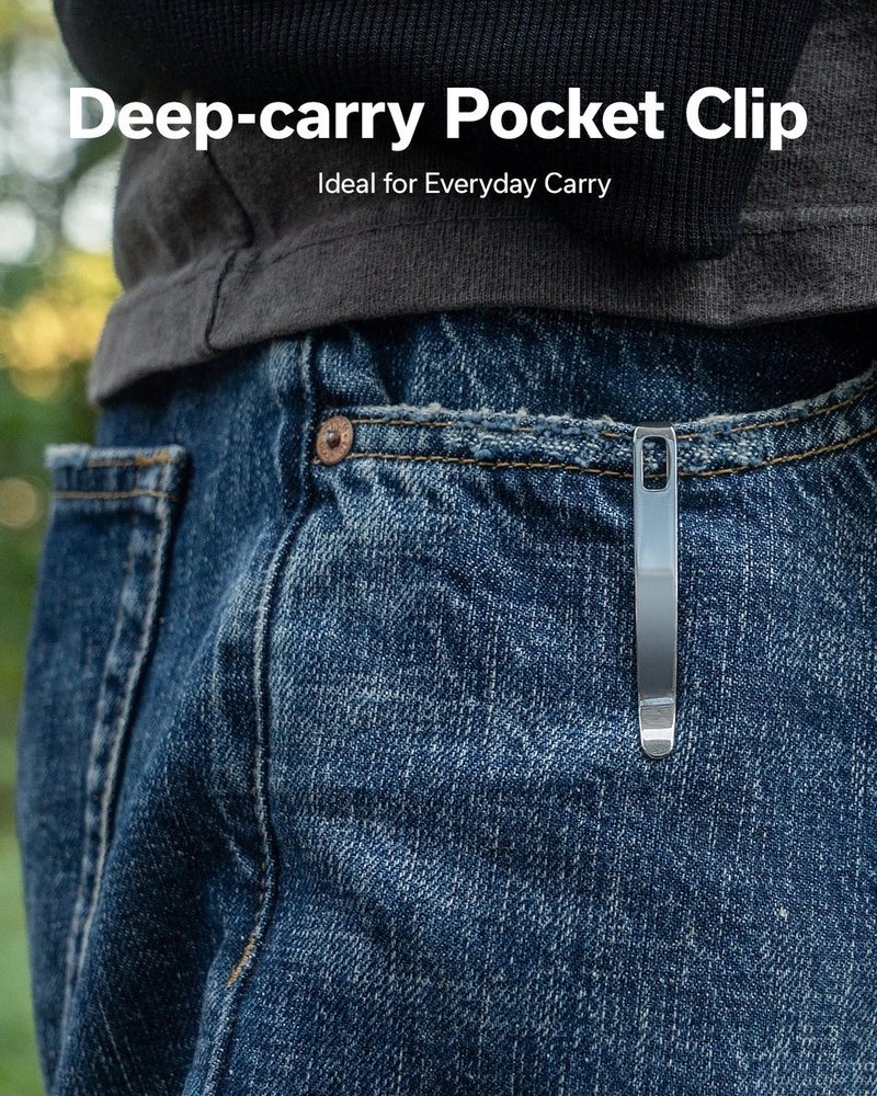Handle - wmade of composite G10, practically indestructible plastic, insensitive to weather conditions, resistant to chemicals and mechanical damage. Chamfered edges covers eliminate sharp edges for convenience, handle. Open design tzw. open-backed mounted with steel sleeves spacers reduce weight and make cleaning easier. The fore finger groove made on the front improves grip security. Two-position, right/left clip deep carry allows you to carry the knife discreetly in your pocket in a position tip-up (with the tip of the blade upwards).