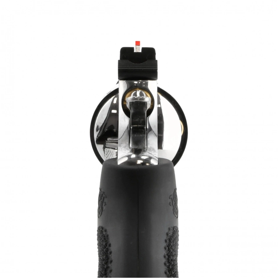 The Smith&Wesson 629 is equipped with mechanical aiming instruments - a fixed bowtie with a contrasting insert, and a vertically and horizontally adjustable pincer. Rubberized facings with anatomical finger cutouts for a secure grip and comfortable shooting experience.