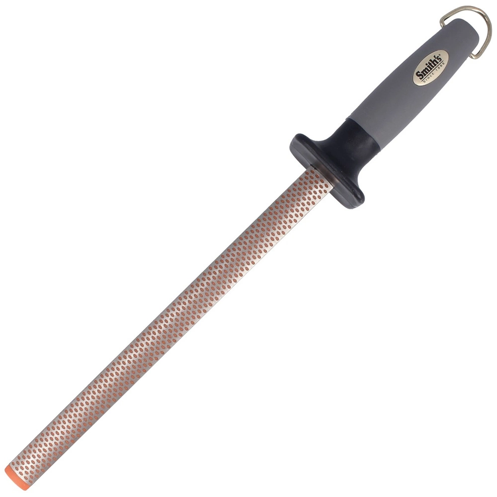 • Smith's 10'' Oval Diamond Sharpening Rod is the world's first oval nib with a "dashed" diamond-coated surface. An indispensable tool for straightening and sharpening the cutting edge of high-end kitchen knives.