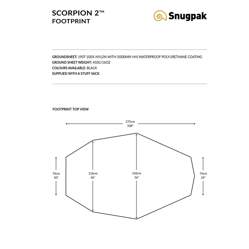 Waterproof and robust tent tarp helps protect the floor of your tent. It is perfectly fitted under the Scorpion 2 tent.