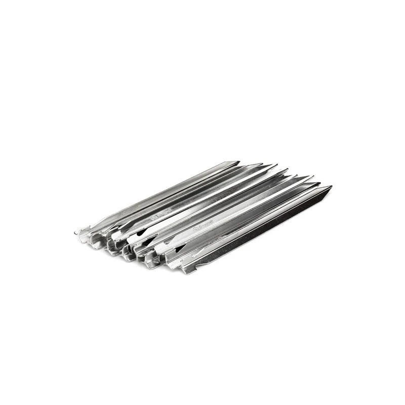 Set of of lightweight pins of Y design designed for use with a tent or tarp. The Y-design pins have a long, tapered tip that makes it easy to place them on any surface.