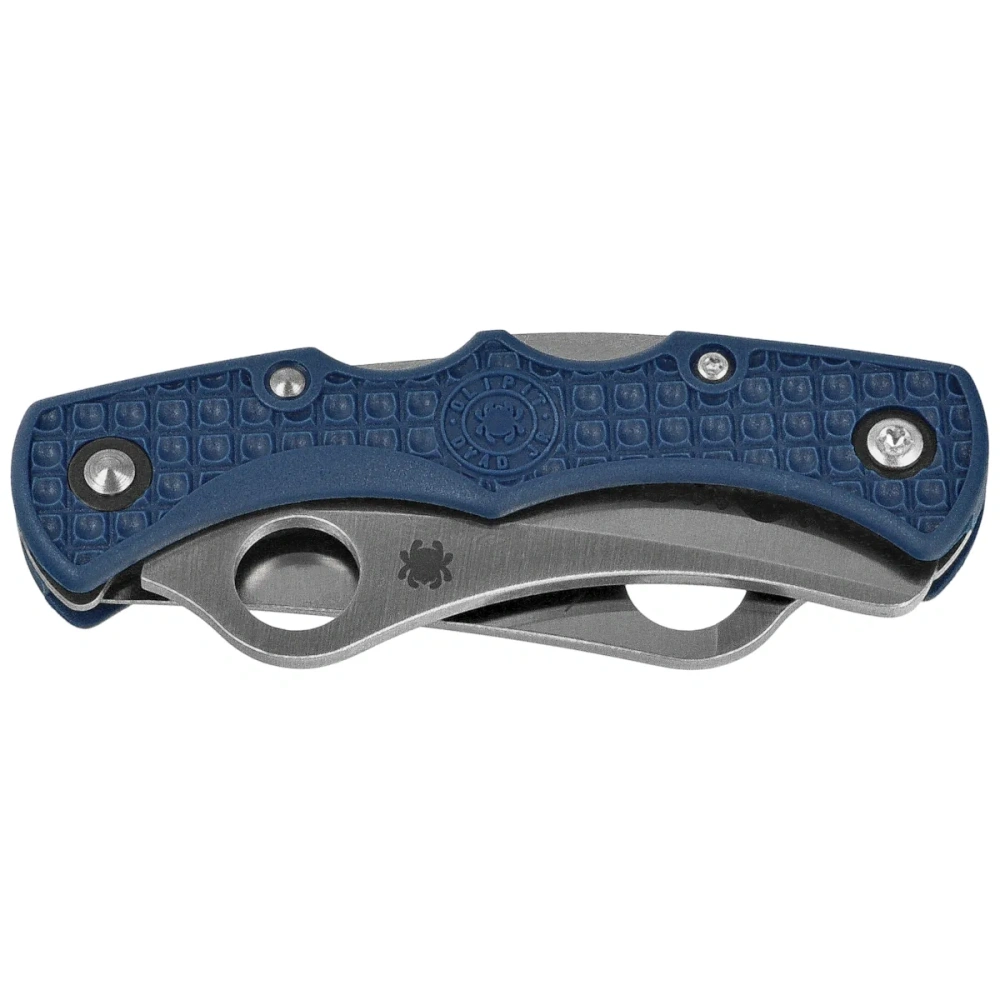 Handle - plastic FRN (fiberglass reinforced nylon) in color cobalt blue, being the distinguishing feature of the line SPY27. Structure Volcano Grip™ provides high adhesion and grip safety in all conditions - both with wet hands and gloves. The ergonomics of the handle allow comfortable operation of both heads regardless of the grip, a lightweight and compact form makes the knife fit perfectly in your pocket - the model is designed to in-pocket carry, without a clip, which increases discretion and wearing comfort. Application bolted construction increases durability and mounting precision - important for knives with dual mechanics. Spyderco Dyad Jr. Lightweight combination conceptual courage, modern materials i limited rarity, aimed at people who expect more from an EDC than just a blade.