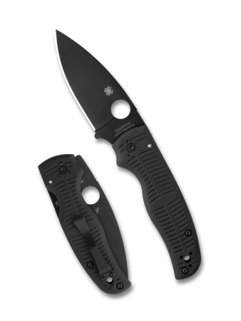 Head - plain blade Plain leading out with a grind flat (Flat Grind). Round cutout SpyderHole (Spyderco patent) for ambidextrous thumb opening. Refined, precision-machined blade locking mechanism Compression Lock guarantees extraordinary smoothness of operation. Notched thumb rest (upper jimping) on the back of the wedge and Finger Choil (an undercut for the index finger between the handle and the cutting edge) make it easier to control the knife.