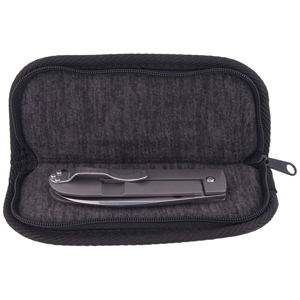 Handle - made of solid titanium 6AL-4V. Both facings with precision machined surfaces, one is the base of the locking mechanism R.I.L. heavy-duty. The spacers connect the two halves of the handle to form a tzw. open-backed, open design that reduces weight and makes cleaning and maintenance easier. The folder is equipped with a twist levo / right-wing a polished clip that allows the knife to be carried in a tip-up position tip-up (blade tip up). In the back of the cladding lanyard hole, cable hole.