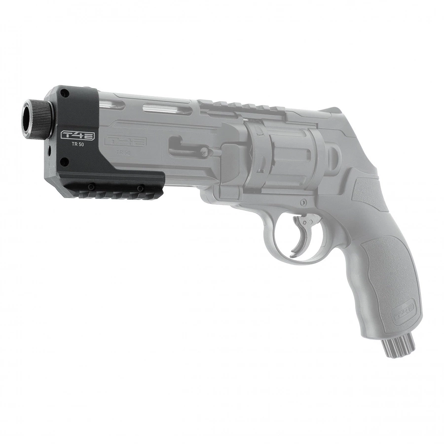 Polymersy adaptor for the X-Tracer exposure outlet device designed for Umarex T4E TR50 revolvers. The design of the item uses Picatinny rail mounting, is extremely easy to install. However, an additional rail located on the device allows the use of tactical lighting.