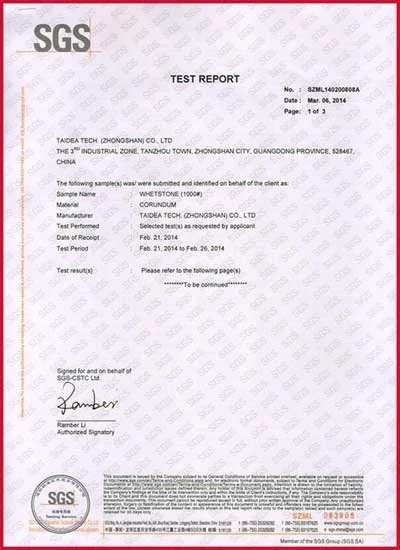 The sharpener is made of alumina, an abrasive known for its high hardness and effectiveness. Confirmation of the quality of workmanship is the SGS certificate, which guarantees controlled grain thickness and repeatability of abrasive parameters.