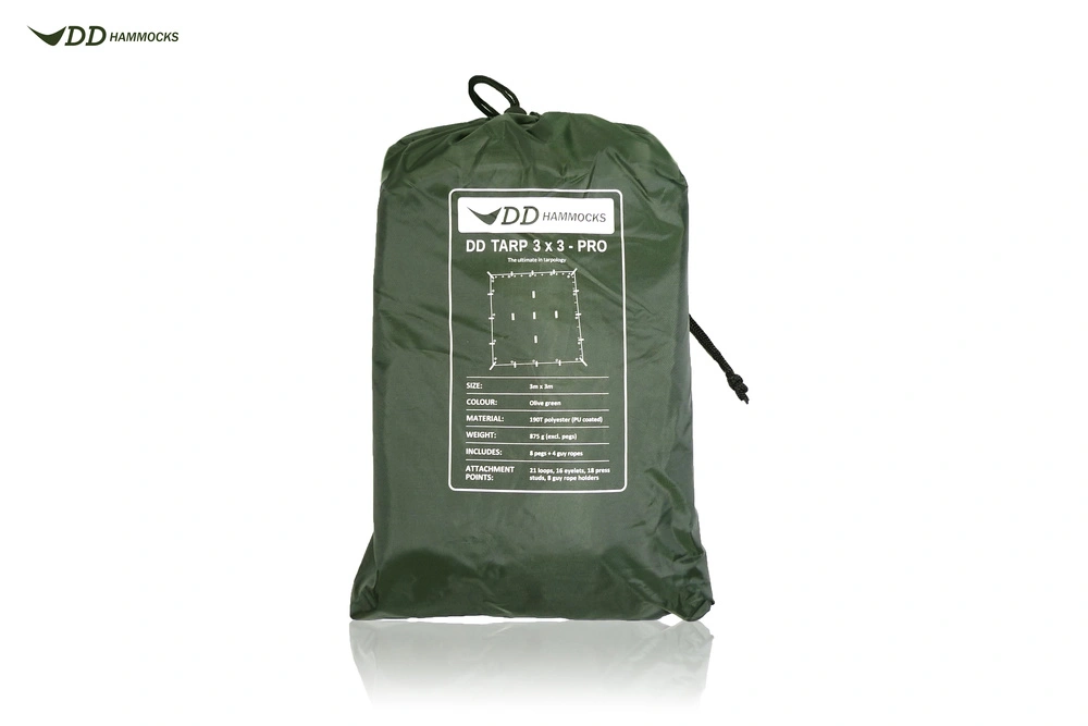 Built on our popular 3x3 tarp and the result of innovation and field testing, the DD Tarp 3x3 - PRO tarp offers unlimited unfolding and versatility with numerous additional features. It allows you to set up a tarp (or several tarps!) in any way: