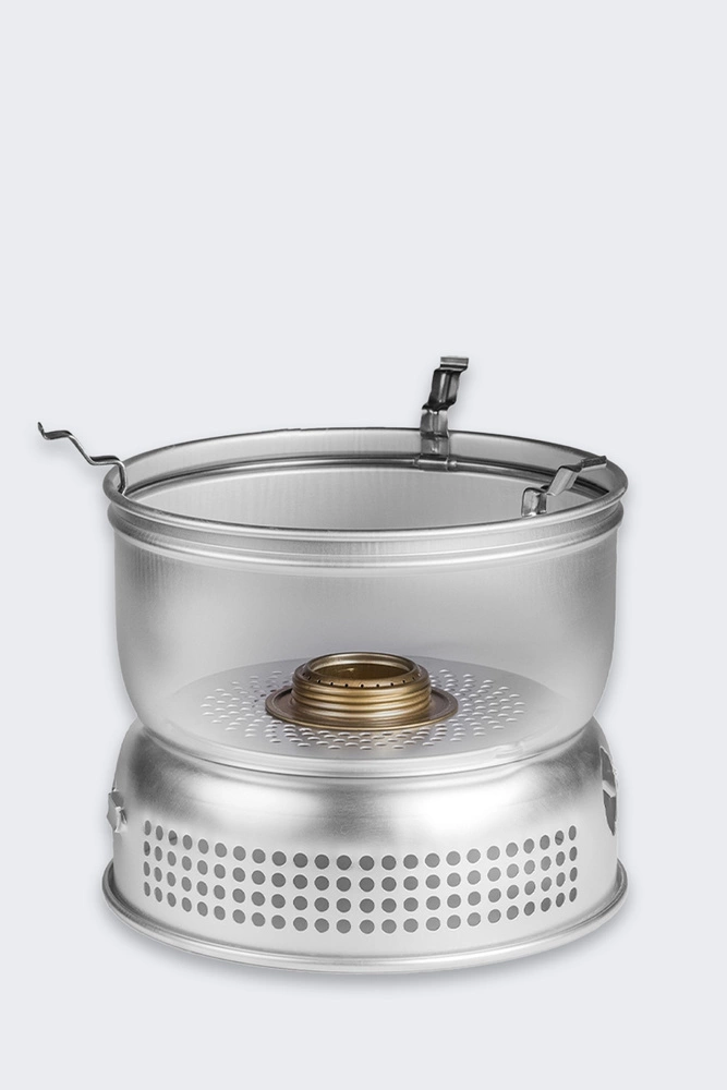 Complete travel kit Trangia Stove 27-8 UL/HA was designed for 1-2 people and made of tempered aluminum (HA), which ensures quick heating of meals and easy maintenance of dishes. The stove includes all the essentials for cooking in the field: two saucepans with a capacity of 1 liter each, a frying pan, a wind shield (top and bottom), a burner, a handle, and a strap to connect the cookware. The 27-8 version is additionally equipped with kettle with a capacity of 0.6 liters.