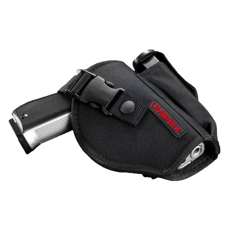 Lightweight, universal belt holster made of ballistic nylon, designed to carry pistols, ASG replicas and wind guns (small and medium models, such as Glock 17/19, Beretta M92, CZ-75). Durable material and a simple attachment system make it a practical and discreet everyday solution.