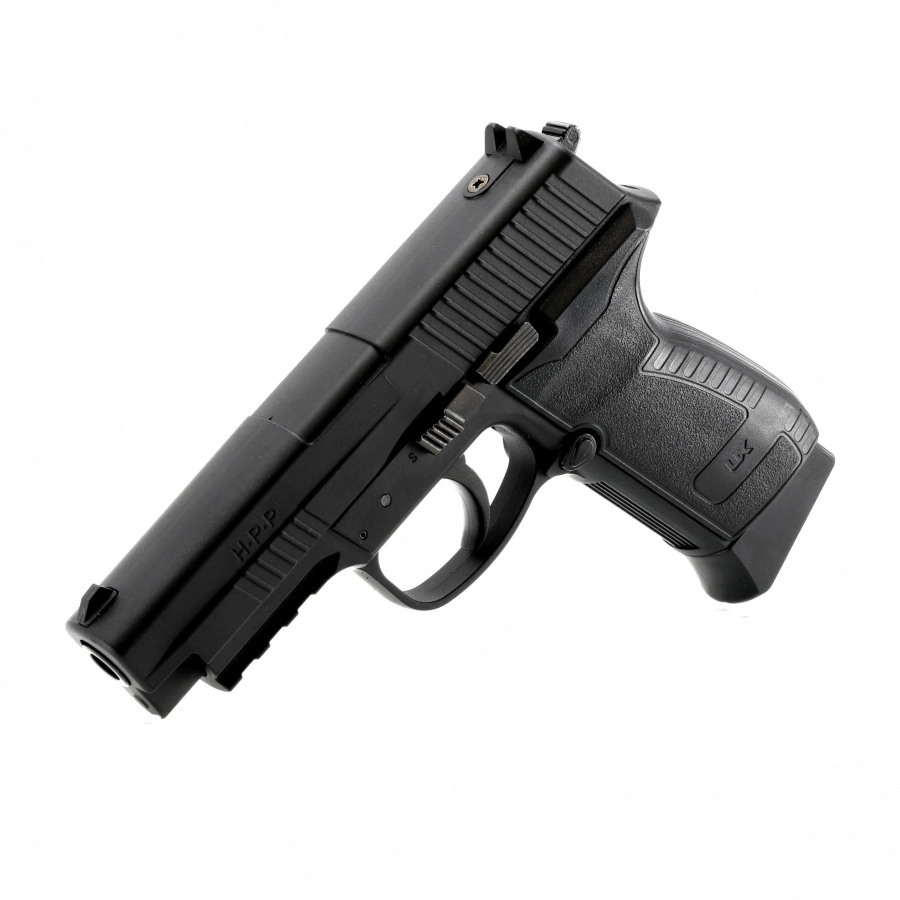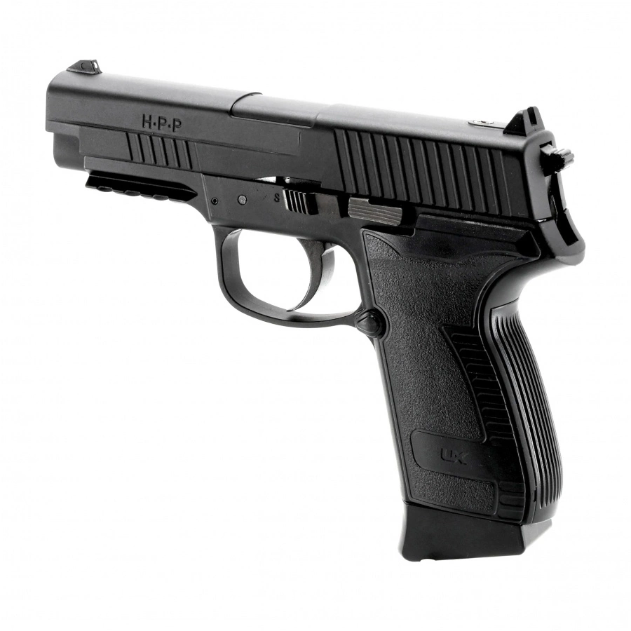 The Umarex HPP 4.5mm BB is a rugged, gas-powered short-barreled air rifle that stands out for its realistic performance and high build quality. Thanks to the CO2 capsule drive and the lock recoil system Blow-Back, provides a unique shooting experience. The metal construction gives it the right weight (815 g), which makes the weapon fit well in the hand and resemble a real firearm in handling.