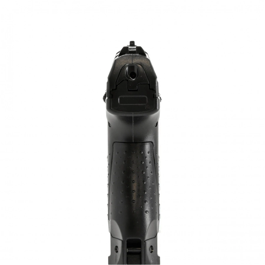 Standard 22 mm accessory rail allows the installation of add-ons such as flashlight or laser target pointer. On the castle and the skeleton were applied licensed Walther markings, highlighting the realistic nature of the replica.