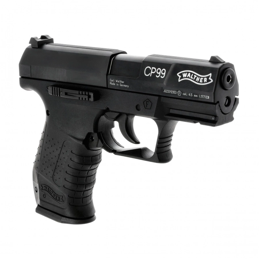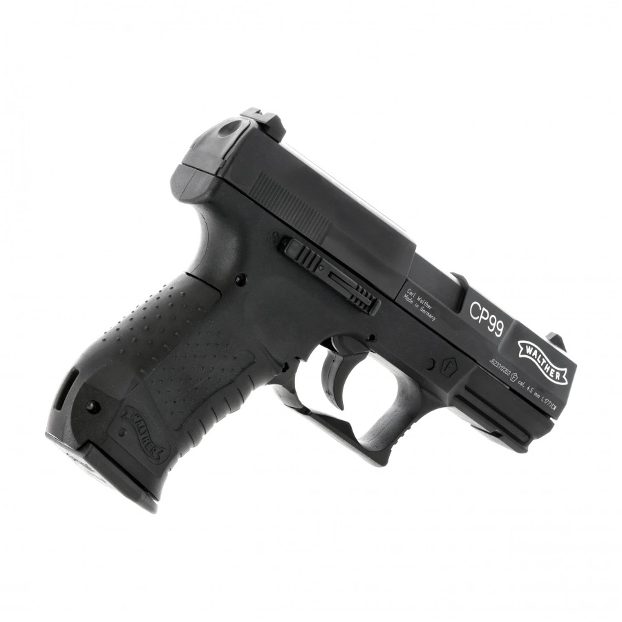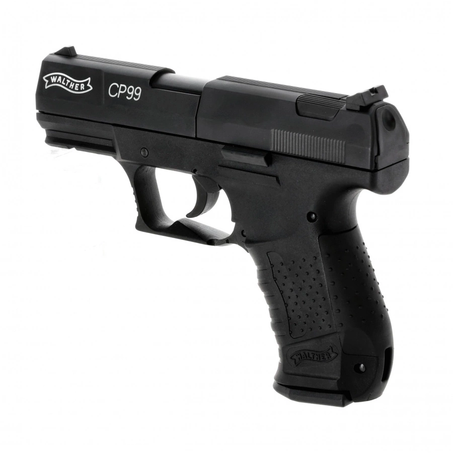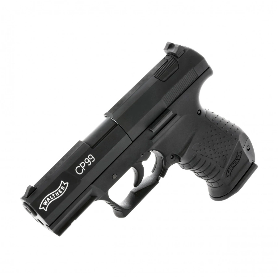 The Walther CP99 4.5 mm Diabolo CO₂ is a modern air rifle, powered by a CO₂ capsule and designed to shoot diabolo shot. This model is a faithful reproduction of the Walther P99 cockless pistol - a design used m.in. by Polish uniformed services.
