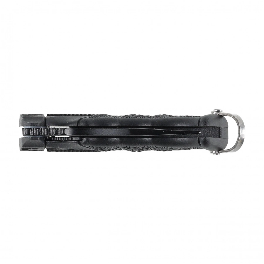 Ergonomic handle made of durable Hi-Grip plastic for a comfortable and secure grip. A metal clip at the end of the handle allows the knife to be attached to keys or a lanyard for added functionality in everyday use.