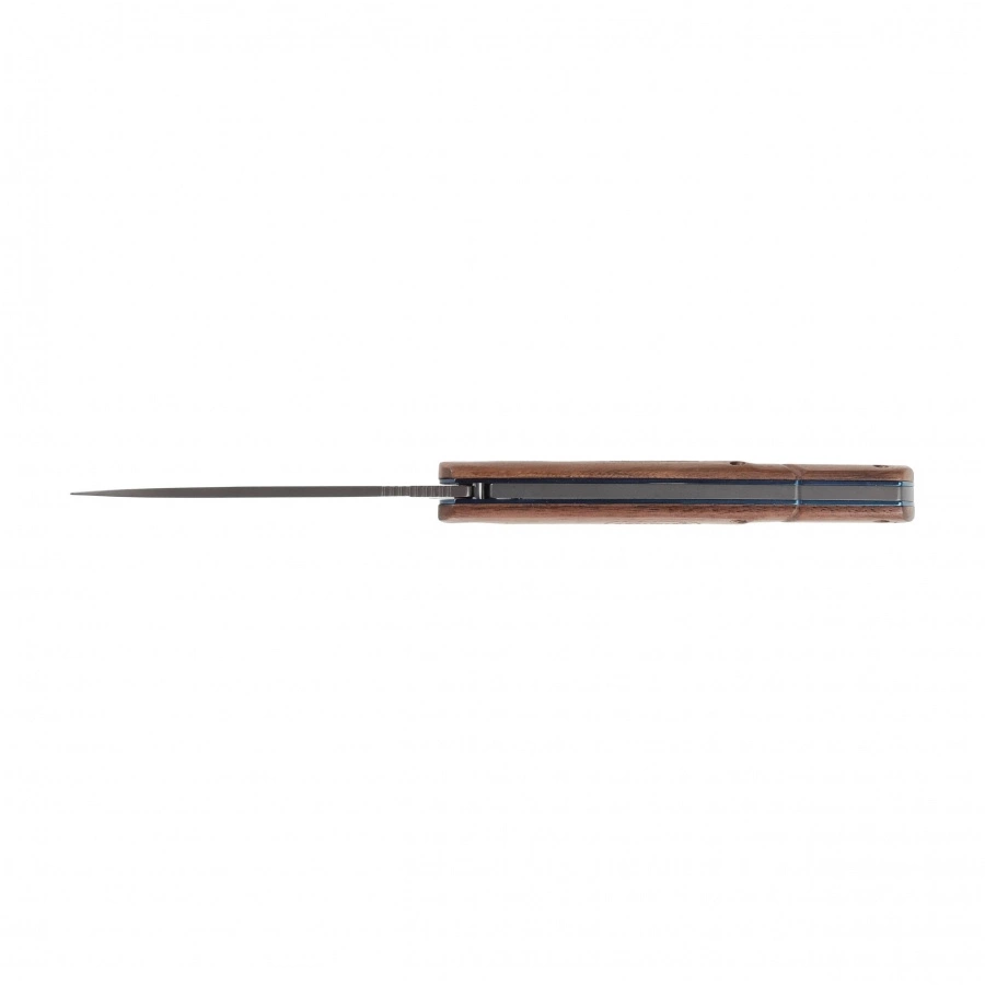 The handle is made of matte walnut wood, profiled with a finger cutout for a secure grip. Lock Liner-Lock effectively protects the blade from accidental folding when unfolded. Two-handed opening using a nail cutout is safe and legal in most EU countries.
