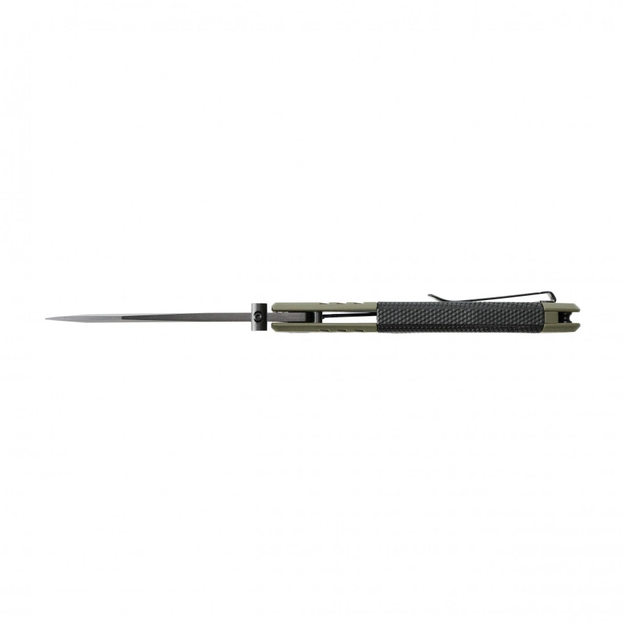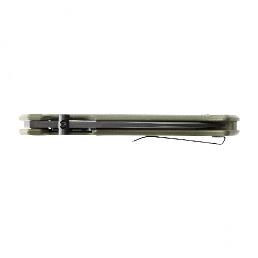 Handle made of G-10 and FRN - ergonomic, green and black, with smooth edges, comfortable for long-term use.