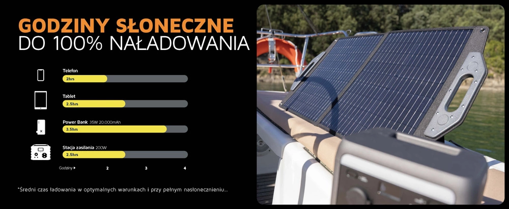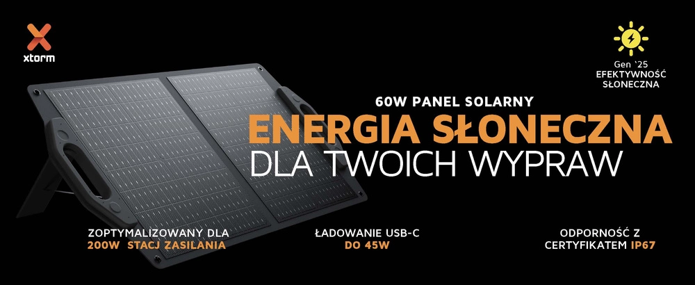 Collapsible 60W solar panel is a practical, independent power source for camping, travel, field trips and power outages. Uses gen '25 monocrystalline cells o high efficiency 24%, so it charges the equipment even in lower sunlight. Equipped with USB-C PD (45 W) and two USB-A ports (18 W) allows you to directly power phones, tablets, cameras, powerbanks or mini power stations.